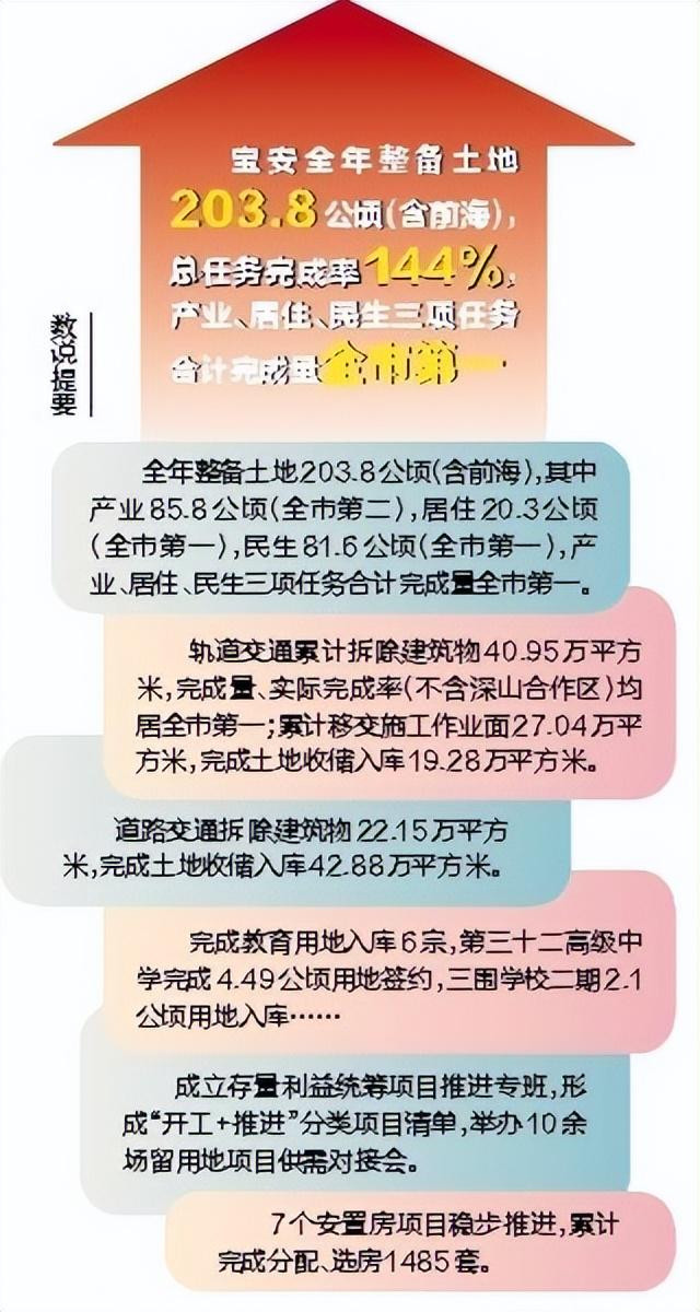 作为全市轨道交通核心承载区,在全市140.49万平方米年度轨道征拆总任务中,宝安承担42.19万平方米,最终累计完成征拆40.95万平方米,征拆完成量、实际完成率(不含深汕合作区)稳居全市首位。